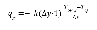 - Menggunakan hukum Fourier, distribusi heat flux bisa dihitung berdasarkan gradien suhu dalam arah x dan y.