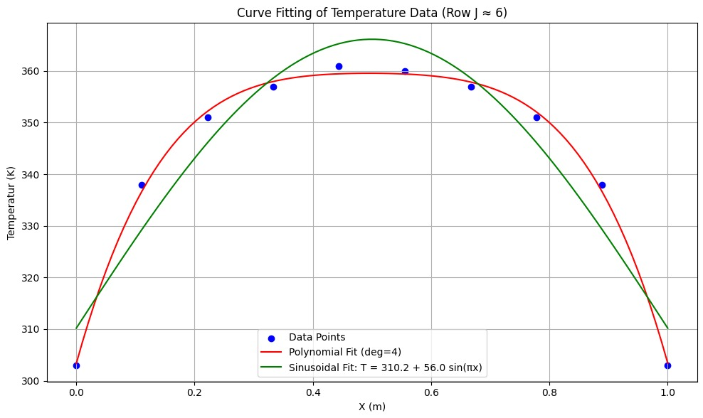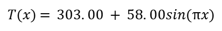 Pada grafik ini, kurva merah menunjukkan kurva dari persamaan 4th degree polynomial fit dan kurva hijau menunjukkan kurva dari sinusoidal fit, serta titik-titik biru menunjukkan data suhu pada simulasi.