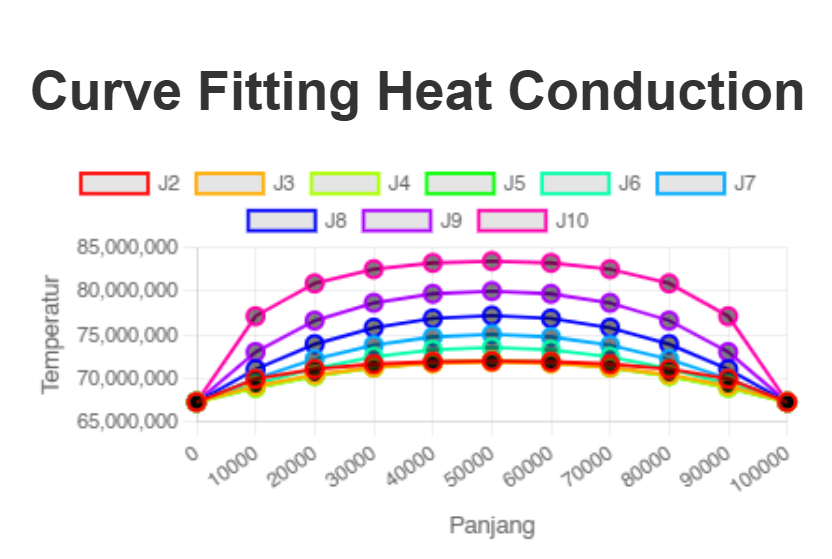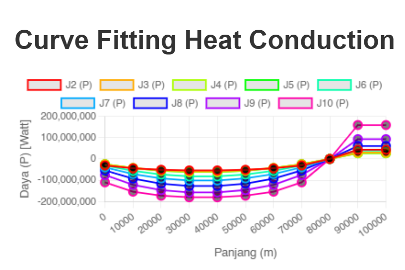 Proyek ini telah berhasil memvisualisasikan persebaran daya berdasarkan data temperatur yang diberikan. Dengan menggunakan Hukum Fourier dan metode numerik, kita dapat menghitung flux panas (qq) dan daya (PP) secara akurat. Visualisasi menggunakan Chart.js memudahkan interpretasi data dan membantu dalam memahami pola distribusi daya.