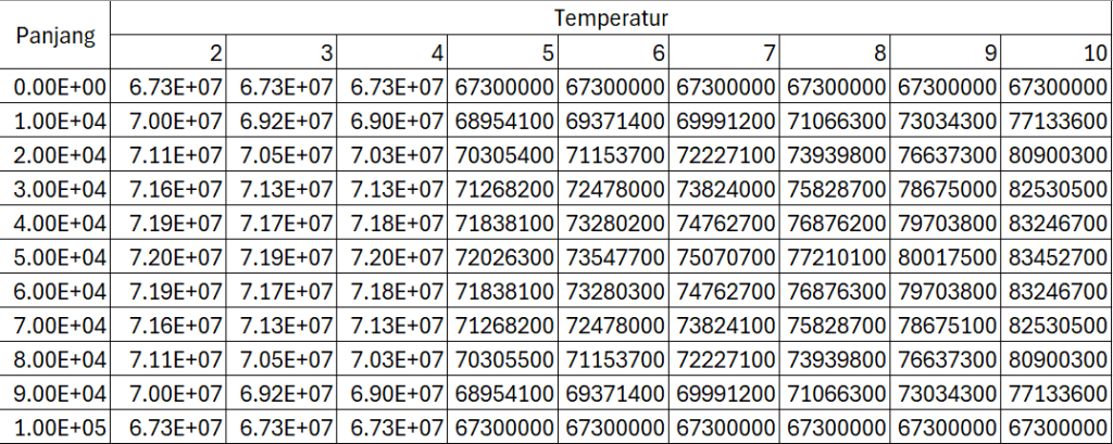 - Gradien temperatur dihitung menggunakan metode numerik (beda hingga) dari data temperatur yang diberikan.