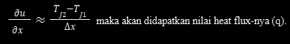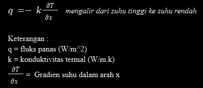 Perhitungan energi panas, sebenarnya mencakup heat flow rate/heat flux ketimbang heat energy. Heat flux tersebut dieksperesikan oleh persamaan: