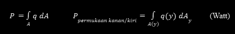 Total heat flow pada plate dihitung beradasrkan kesetimbangan energi pada plat sepanjang boundary: