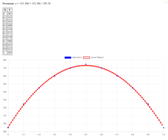Proses curve fitting dilakukan dengan algoritma least square method.