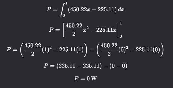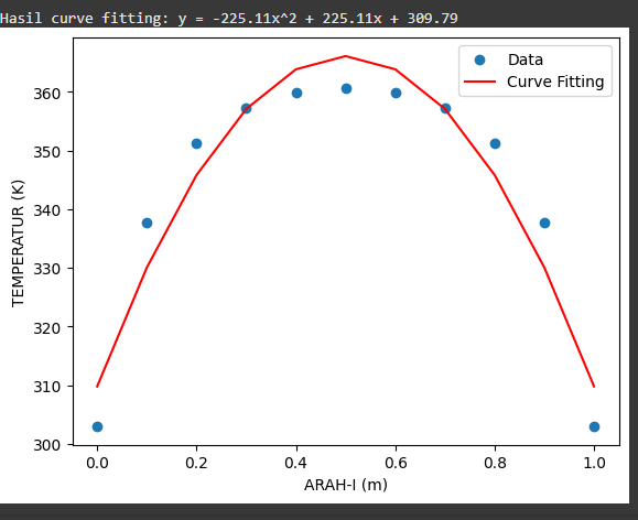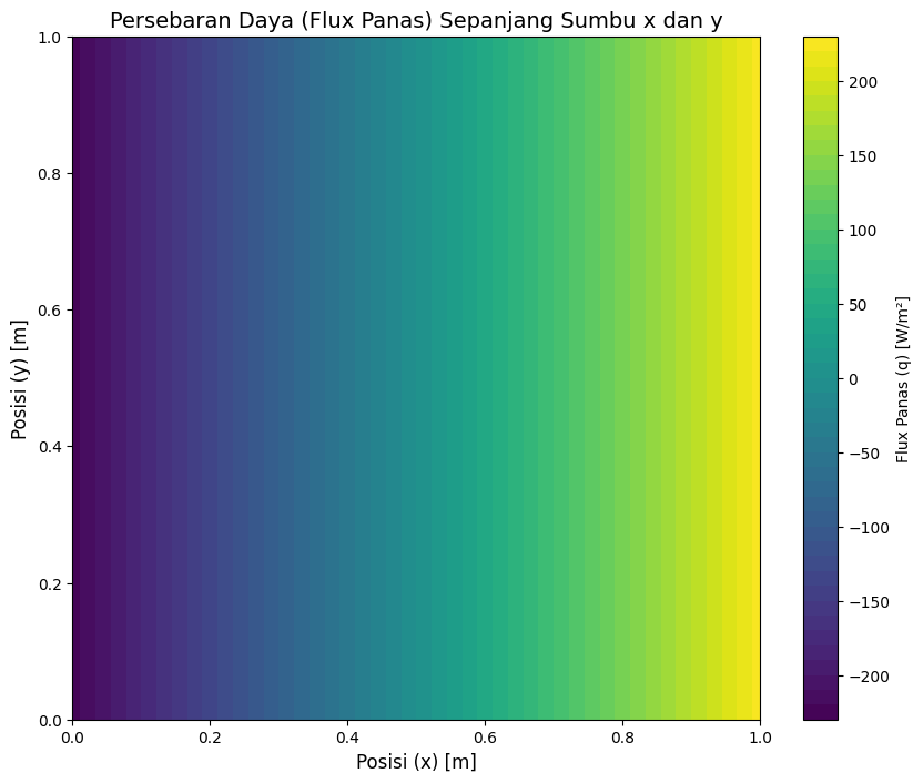 Selanjutnya saya memvisualisasikan persebaran daya yang dapat dilihat dari nilai flux panas (q) di setiap titikย x: q(x)=450.22xโ225.11. Dengan menggunakan x = 0 dan x = 1 maka saya mendapatkan q(0) = โ225.11W/mยฒ dan q(1) = 225.11W/mยฒ.