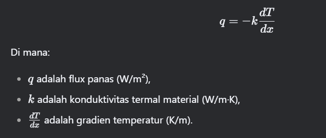 Lalu step selanjutnya setelah mendapatkan persamaan temperatur : y = -225.11x^2 + 225.11x + 309.79, saya mengubah persamaan temperatur tersebut menjadi persamaan flux panas menjadi seperti berikut ini :