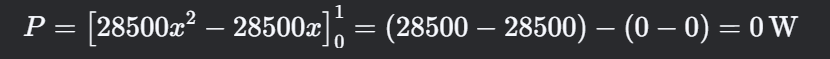 Selanjutnya saya akan menghitung daya total yang dihitung dengan mengintegralkan flux panas q(x) terhadap luas penampang (A):
