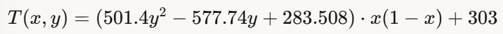 Nilai a(y) tersebut kemudian disubtitusikan pada persmaan T(x) sehingga didapatkan Persamaan Temparture 2D yaitu: