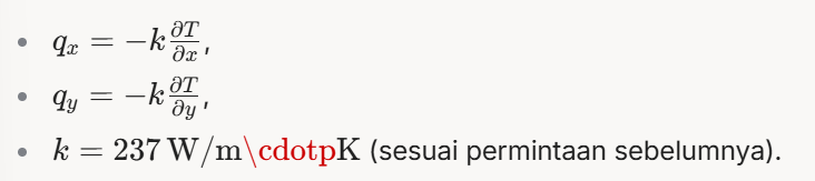 4. Melakukan perhitungan flux panas menggunakan hukum fourier