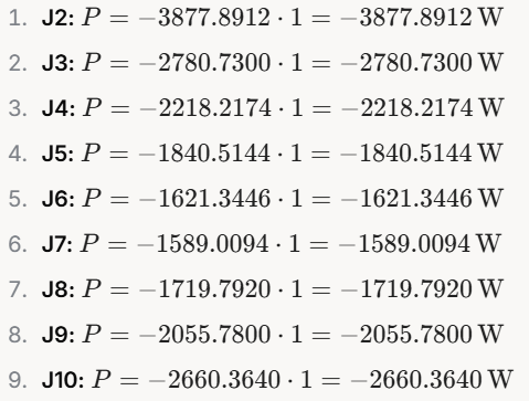 P = (3242.6892 / 2) + (-1621.3446) = 1621.3446 - 1621.3446 = 0 W