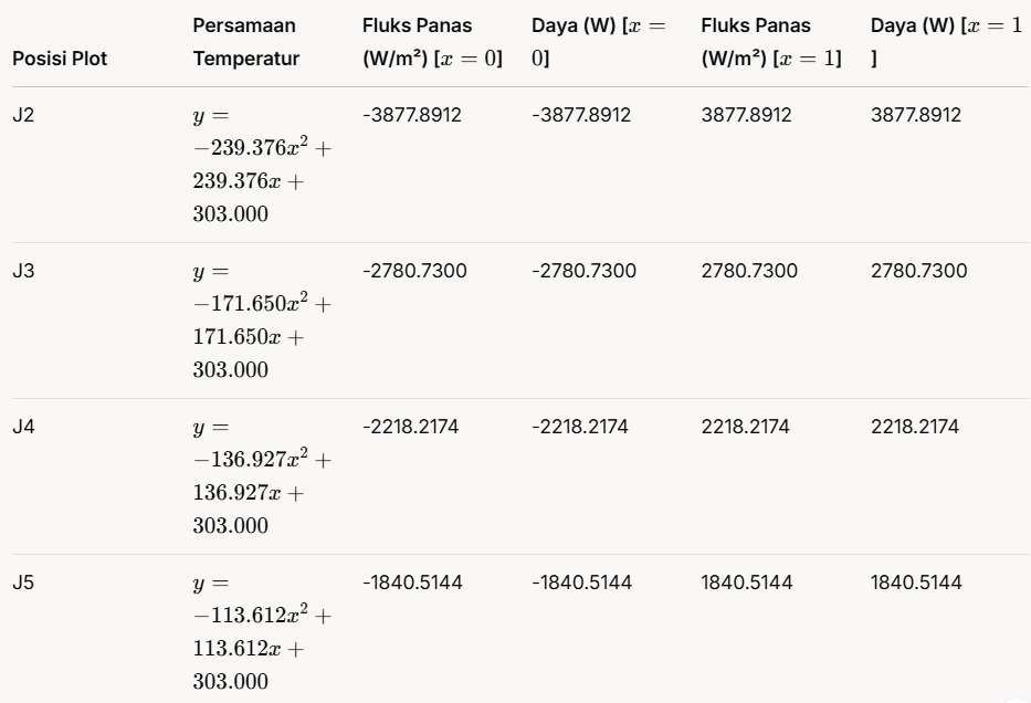 Tujuan utama dari analisis ini adalah memahami hubungan antara daya, fluks panas, dan temperatur pada sistem termal ini.