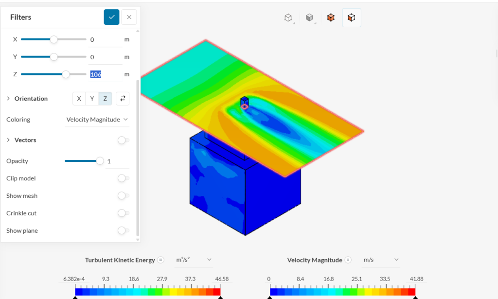 • The highest velocities typically occur at sharp edges and over the roofline, where flow is forced to accelerate around obstacles.