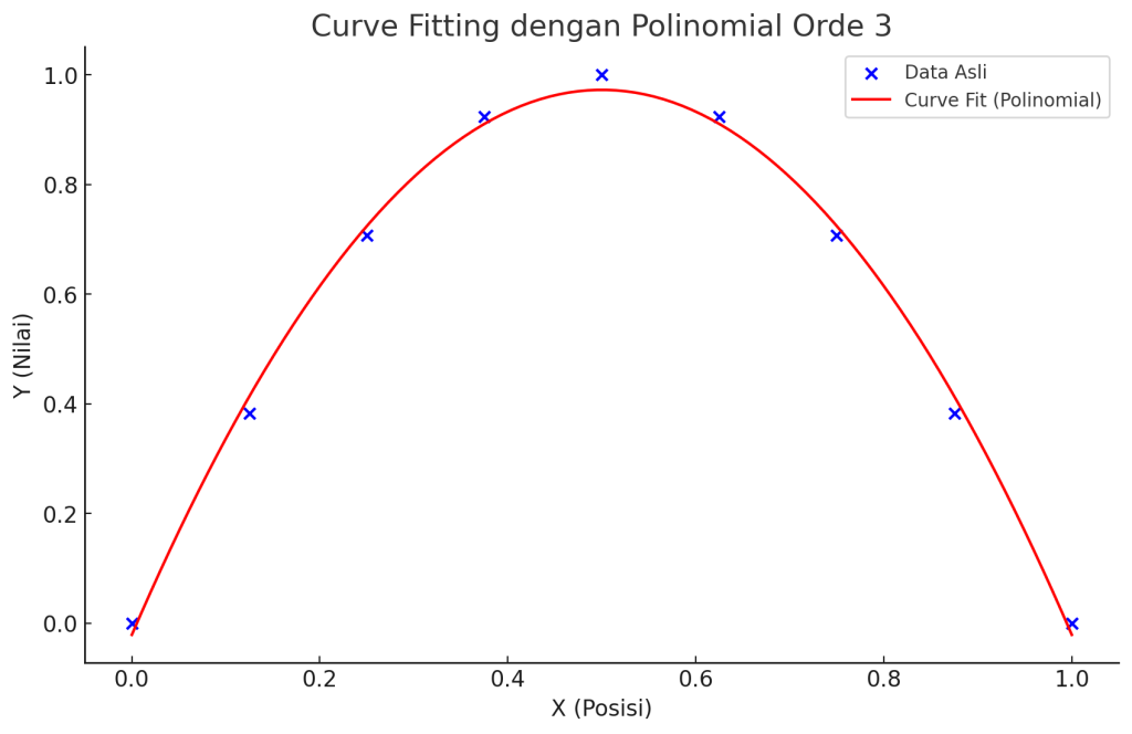 Setelah melakukan hal tersebut, didapatkanlah hasil curve fittingnya dengan bantuan AI dalam men-generate grafiknya seperti ini: