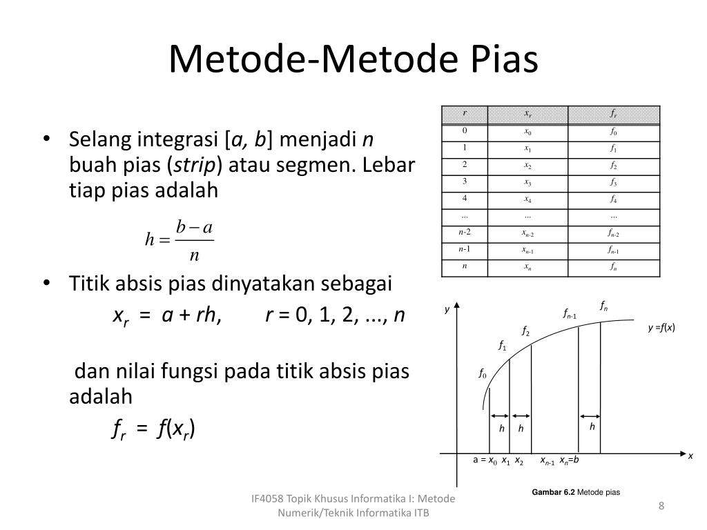 - Metode Pias (Riemann Sum): Membagi area integral menjadi pias kecil untuk mendekati nilai integral.