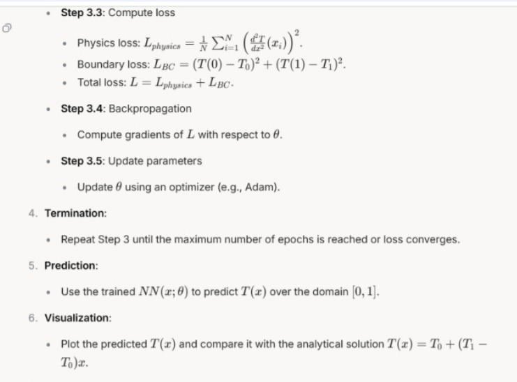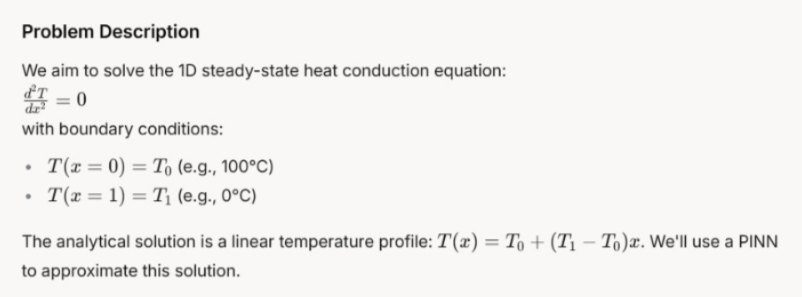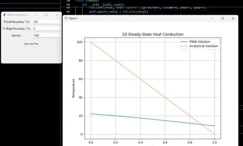 A Physics-Informed Neural Network (PINN) implemented in Python using PyTorch to solve a 1D steady-state heat conduction problem. I’ll also include a simple GUI using tkinter to input parameters and display the results.