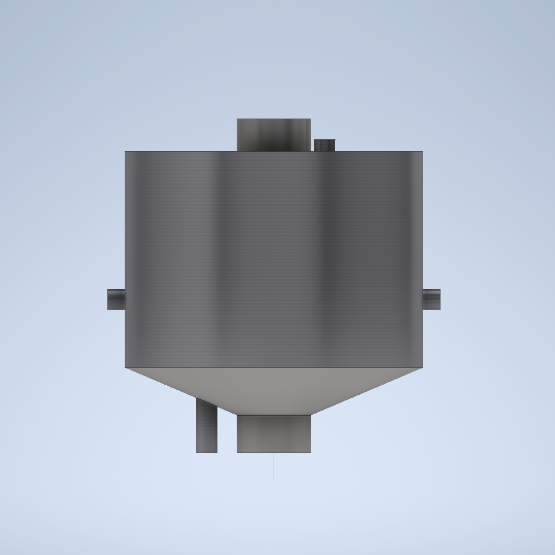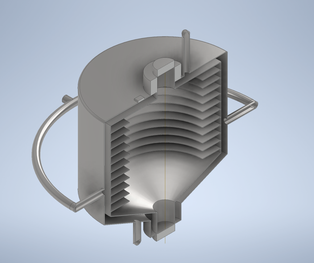 This is the 3D Model that i designed with Autodesk Inventor 2025, i utilized two hot air inlet (from the generator’s exhaust) as seen on the arched piping on the horizontal sides of the reactor. The exhaust air then transferred to the cold outlet pipe as seen on the two straight pipe on the vertical sides.