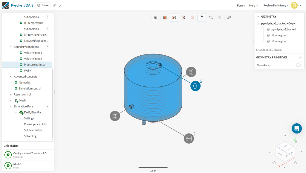 In this assignment, i designed a 3D Model of a pyrolysis reactor with a constraint dimension of around 1m x 1m x 1m. This pyrolysis reactor is intended to be used for wastes from DAIS cultivation. The heat comes from the exhaust of a generator.