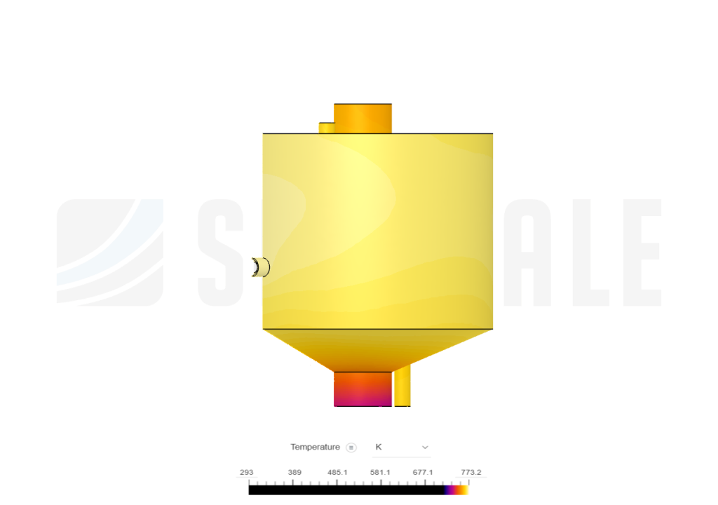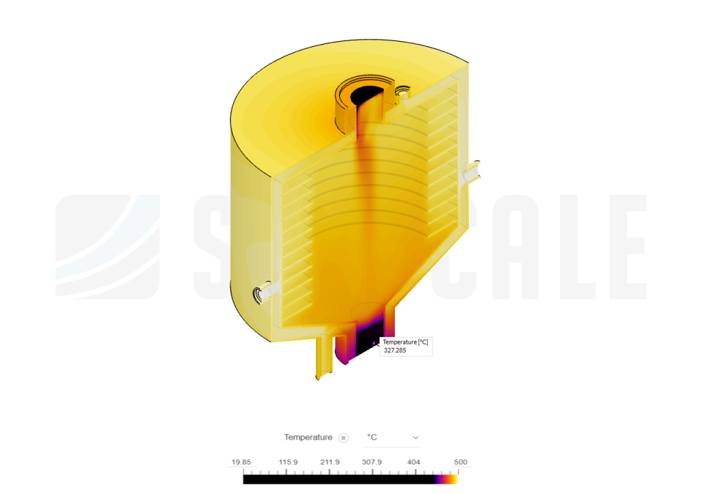 Based on the the inspect pointer pointed on the lowest-temperature region of the pyrolysis reactor which is 327.2 ยฐC is sufficient for the pyrolysis process while it is important to mention that it depends on the subject used.