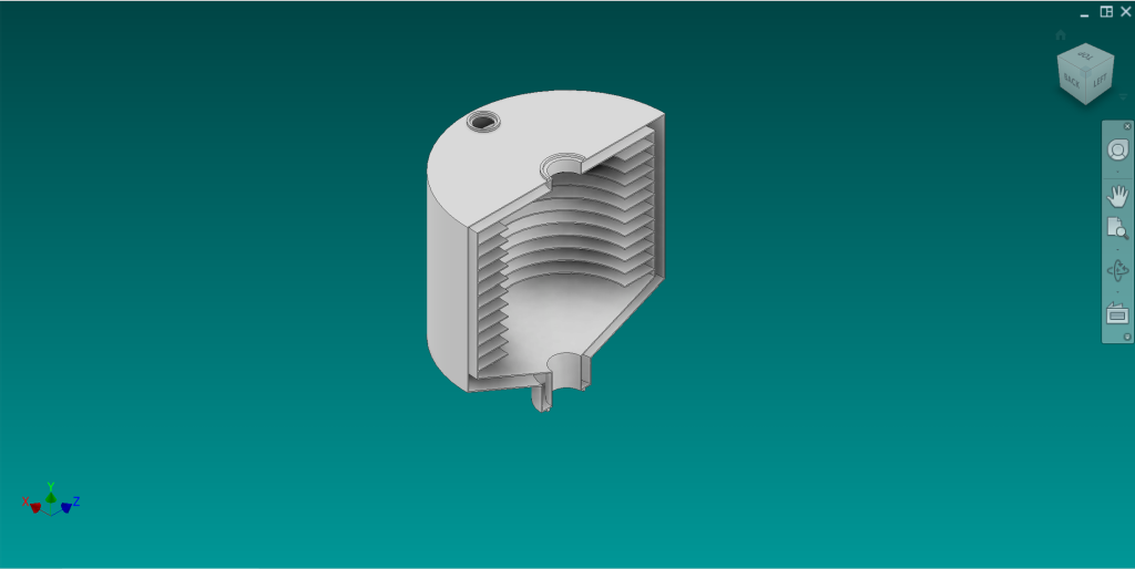 This 3D model was designed using Autodesk Inventor 2025. I incorporated two hot air inlets, sourced from the generatorโs exhaust, which are represented by the pipes on the bottom side of the tank. After circulating through the system, the exhaust air exits through the cold outlet pipes, visible as the two vertical straight pipes.