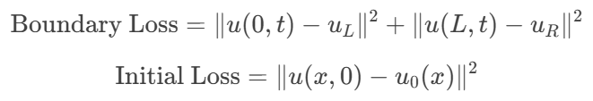Agar PINN belajar menyelesaikan persamaan diferensial, kita akan meminimalisir loss yang terdiri dari physics loss dan boundary condition loss.