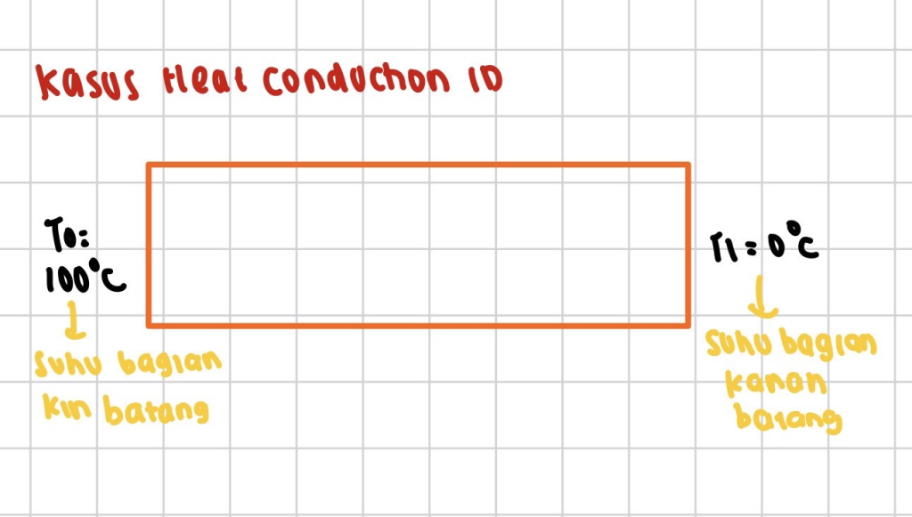 Tahapan ini berkaitan dengan penyederhanaan permasalahan dimana saya menggunakan contoh Heat Conduction 1D pada sebuah batang