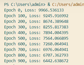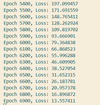 - Setiap 100 epoch, nilai loss dicetak untuk memantau proses pelatihan.