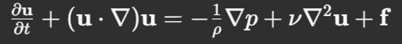 PINN dalam CFD berperan sebagai alat untuk memprediksi medan kecepatan dan tekanan dengan tetap mematuhi persamaan Navier-Stokes. Persamaan ini menggambarkan dinamika partikel fluida, termasuk hubungan antara kecepatan fluida (u), tekanan (p), densitas (rho), viskositas kinematik (v), dan gaya eksternal (f). Dalam CFD klasik, persamaan ini diselesaikan secara numerik dengan metode diskritisasi. Namun, PINN menggunakan pendekatan berbasis pembelajaran mesin dengan fungsi kerugian yang menegakkan hukum fisika ini.