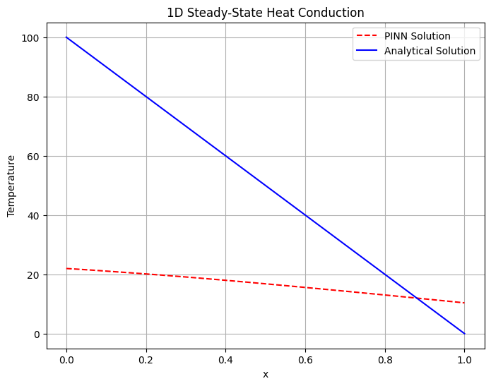 # Physics loss (dยฒT/dxยฒ = 0)