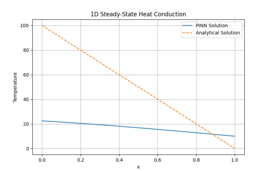 : Memastikan PINN memenuhi boundary condition (temperatur di x=0 dan x=1).- Kerugian total adalah jumlah dari dua komponen tersebut.