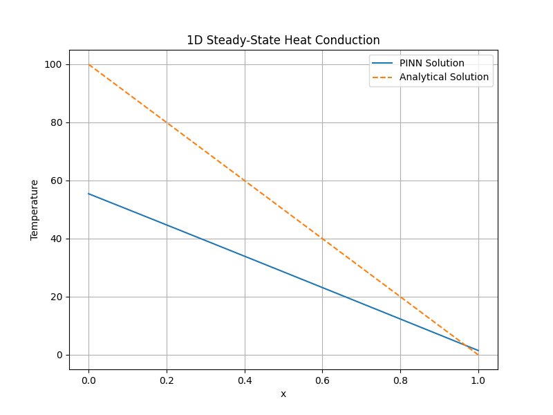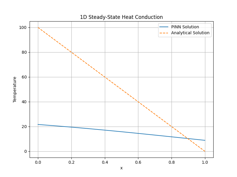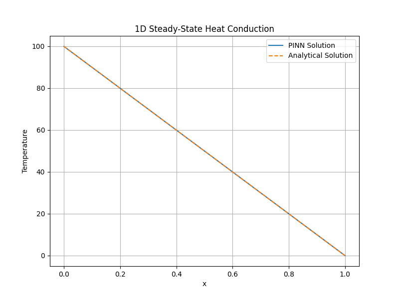 Konduksi panas 1D merupakan masalah yang secara analitis memiliki solusi linier. Dengan memahami sifat fisiknya, kita dapat mengevaluasi apakah PINN memberikan solusi yang sesuai dengan ekspektasi teori.