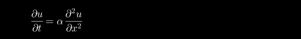 di mana u(x,t) adalah suhu pada posisi x dan waktu t, serta \alpha adalah koefisien difusi termal material.