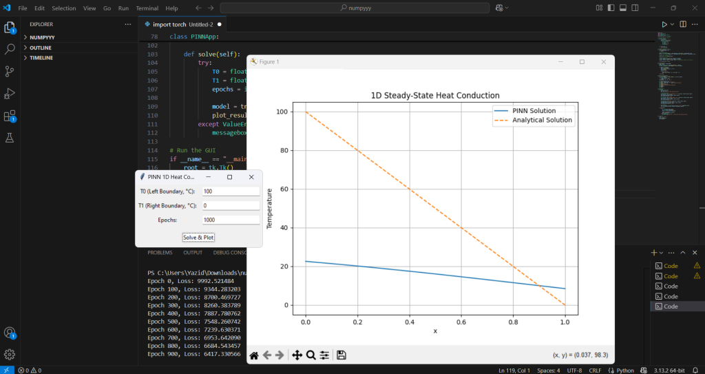 bc_loss = (T_left - T0)**2 + (T_right - T1)**2 # Fixed boundary condition loss calculation