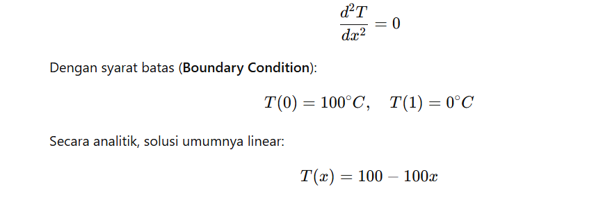 Contohnya di soal kita ini: Heat Conduction 1 Dimensi (1D). Rumus dasarnya itu: