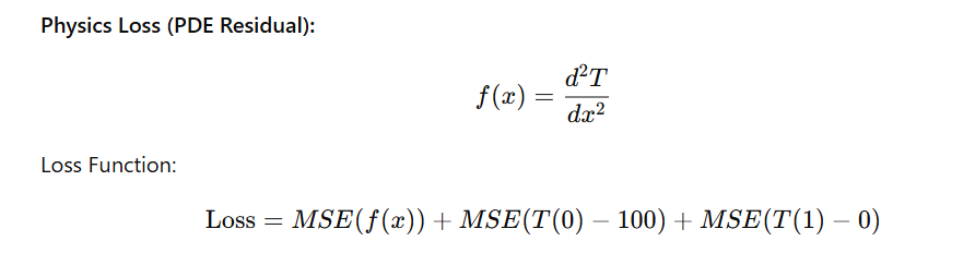 - Boundary Loss: T(0)=100, T(1)=0