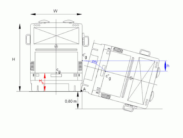 • The initial rollover position is determined by calculating the angle until the frame structure loses its stability and begins to tip over.