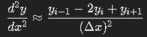 Aproksimasi turunan kedua dari defleksi terhadap posisi (x) dinyatakan sebagai: