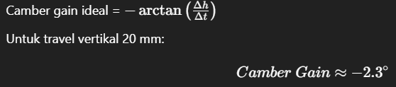 • Suspensi: Fokus pada ketinggian roll center dan sudut camber dinamis.