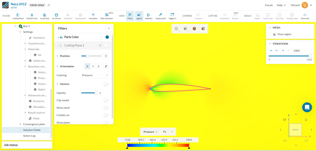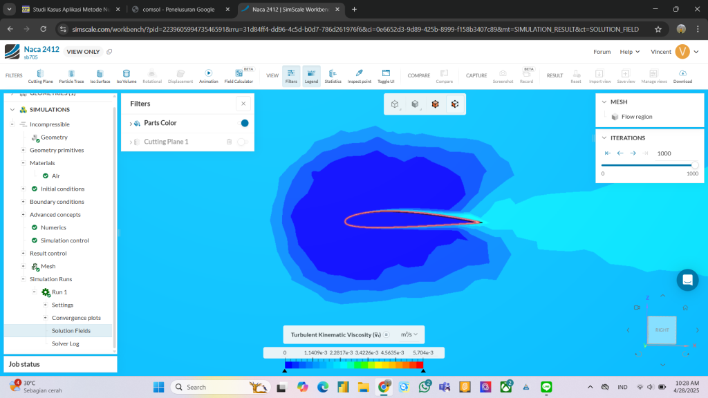 6. Simulasi viscosity turbulence Naca 2412 di SimScale