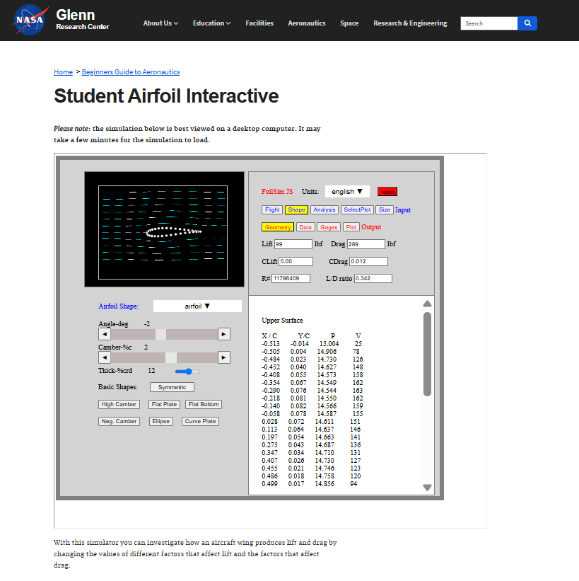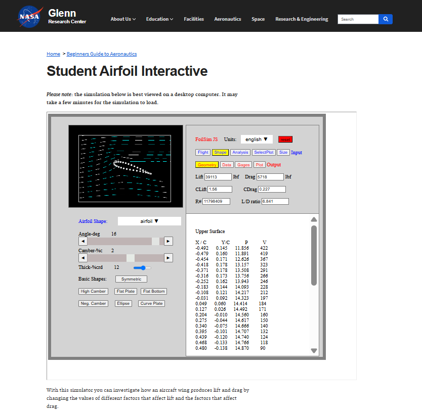 Apabila kita menggunakan student airfoil interactive yang disediakan oleh nasa, lalu menyetel camber % sebesar 2% dan cord thickness sebesar 12% (sesuai dimensi dari Naca 2412), akan kita peroleh angle of attack di mana lift coefficient (CL) bernilai 0 adalah ketika ฮฑ = -2ยฐ dan bernilai maksimum (1.56) ketika ฮฑ = -16ยฐ