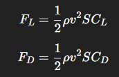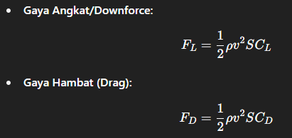 Gaya aerodinamis dihitung menggunakan rumus dasar berikut: