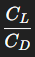 Efisiensi aerodinamis suatu wing diukur menggunakan Lift-to-Drag Ratio: