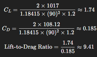 - Lift-to-Drag Ratio โ 9.41
