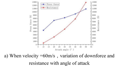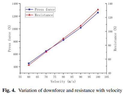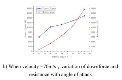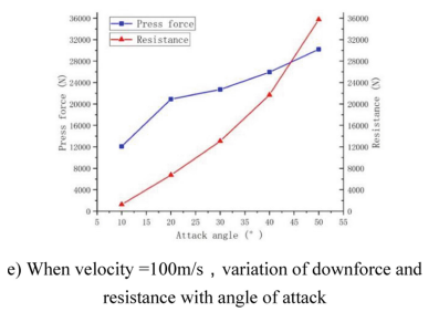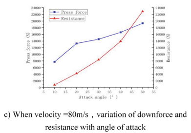 | Kecepatan (m/s) | Downforce (N) | Drag (N) | Lift-to-Drag Ratio |