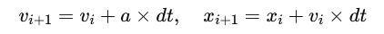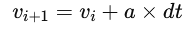 velocity[i] = velocity[i-1] + a * dt