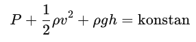 Hukum Bernoulli menyatakan bahwa dalam aliran fluida yang ideal, jumlah energi per satuan volume fluida tetap konstan sepanjang aliran jika tidak ada gesekan atau kehilangan energi lainnya. Secara matematis, hukum Bernoulli dapat dituliskan sebagai: