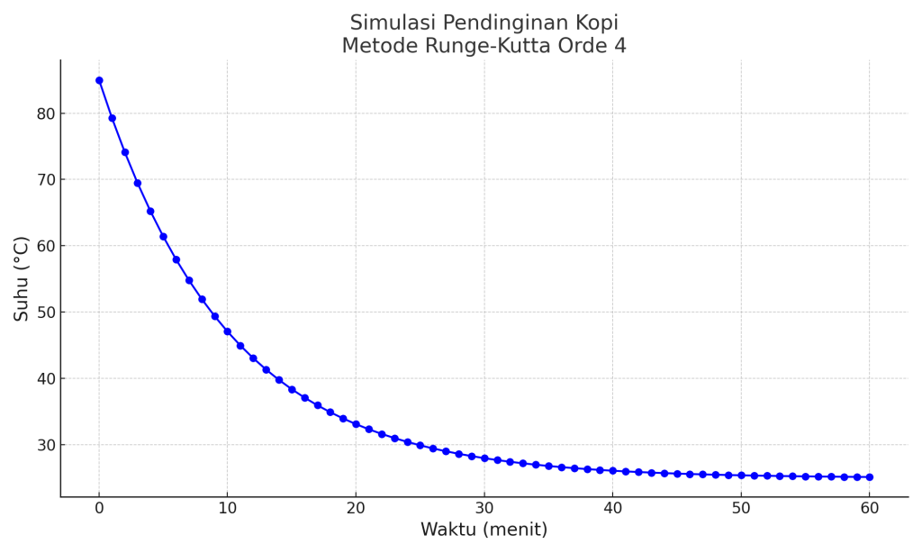 Metode Runge-Kutta orde 4 efektif dan akurat dalam mensimulasikan pendinginan kopi.