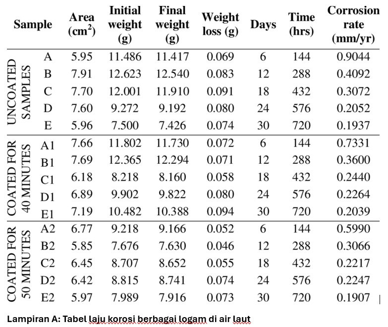 Dari hasil ini terlihat bahwa walaupun angka korosi tampak kecil, dalam jangka beberapa tahun bisa menyebabkan penipisan material yang signifikan, membahayakan struktur.