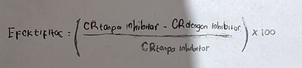 Rumus ini membantu mengevaluasi seberapa efektif suatu bahan inhibitor dalam menurunkan laju korosi logam.