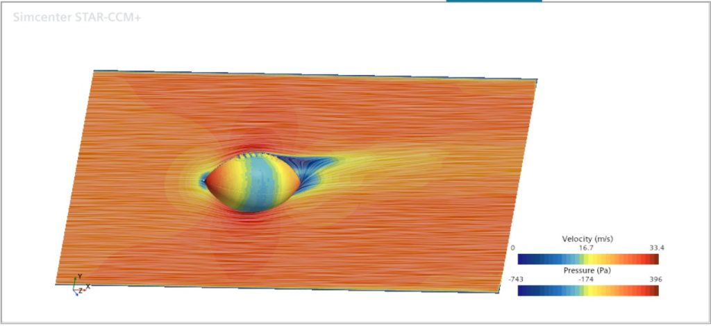 - Streamline memperlihatkan simetri aliran serta area turbulensi yang penting untuk stabilitas bola saat rotasi (spin).
