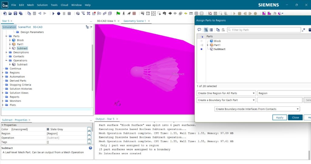 Rangkaian kegiatan ini merupakan bagian dari pembelajaran dalam mata kuliah Metode Numerik, yang menitikberatkan pada penerapan simulasi numerik menggunakan pendekatan Computational Fluid Dynamics (CFD). Dalam hal ini, perangkat lunak Siemens STAR-CCM+ dimanfaatkan untuk mensimulasikan aliran fluida melalui suatu geometri yang telah dilengkapi dengan kok badminton, guna mengevaluasi pengaruhnya terhadap distribusi tekanan, profil kecepatan, serta gaya hambat (drag).