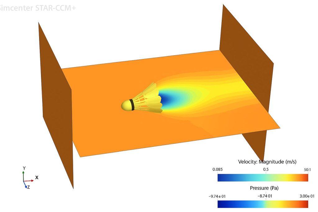 Simulasi aliran udara menggunakan STAR-CCM+ memungkinkan analisis kuantitatif terhadap perilaku aerodinamis kok badminton secara rinci. Dengan pendekatan FEM/CFD dan pemodelan geometri yang sesuai, diperoleh pemahaman yang lebih dalam tentang distribusi tekanan, kecepatan, dan gaya hambat yang memengaruhi stabilitas dan kecepatan kok saat melayang di udara.